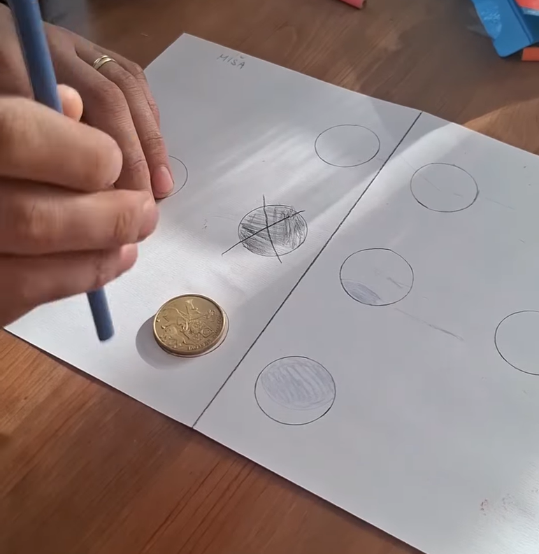 Připravte si herní plán. Rozdělte papír na dvě poloviny – každá strana patří jednomu hráči. Na každé straně obkreslete minci 3–5x (to jsou lodě).