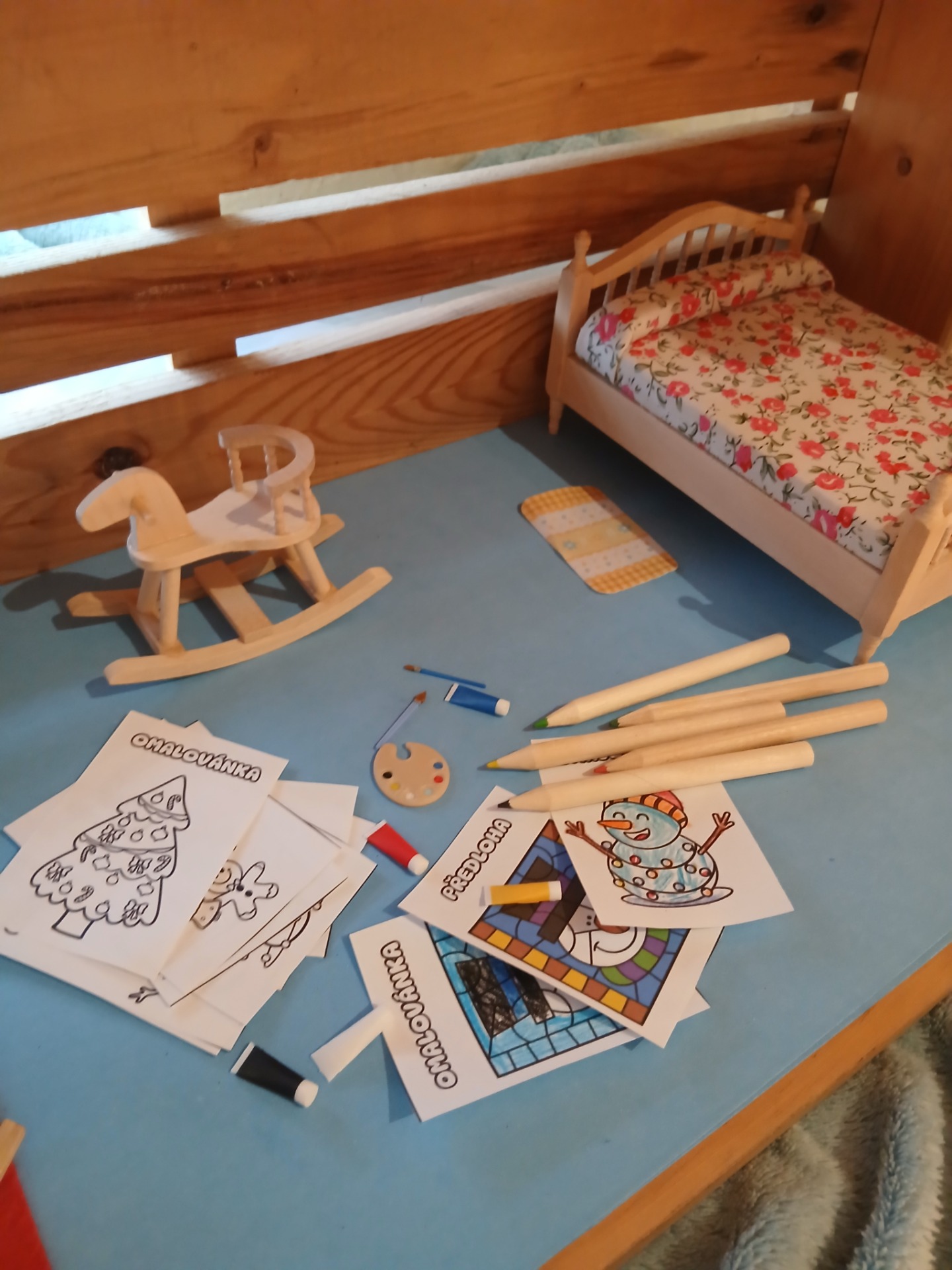 - Stůl, židle a kolíbka: Objednala jsem je na Temu. Překvapila mě jejich kvalita. Pouze stolu během převozu upadla noha, ale to jsem snadno vyřešila tavnou pistolí.